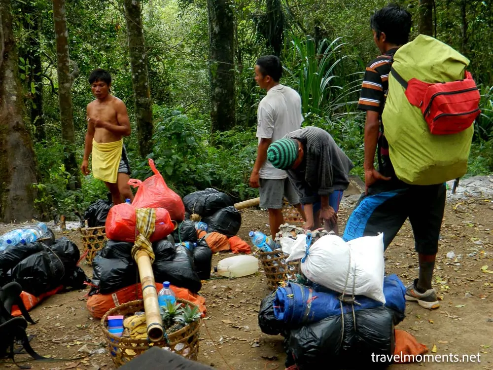 El trekking comenzó con una facilidad engañosa, serpenteando a través de una selva tropical con inclinaciones relativamente suaves. El optimismo inicial de Angeline se desvaneció rápidamente cuando el sendero se empinó. El peso de su mochila, llena de artículos que más tarde admitiría que no eran necesarios, aumentaba la carga. Jadeando y resoplando bajo el dosel tropical, se maravillaba de los porteadores. Usando solo sandalias y llevando hasta 35 kilogramos de suministros, estos lugareños se movían con un ritmo constante, a menudo adelantando a los excursionistas que luchaban.
