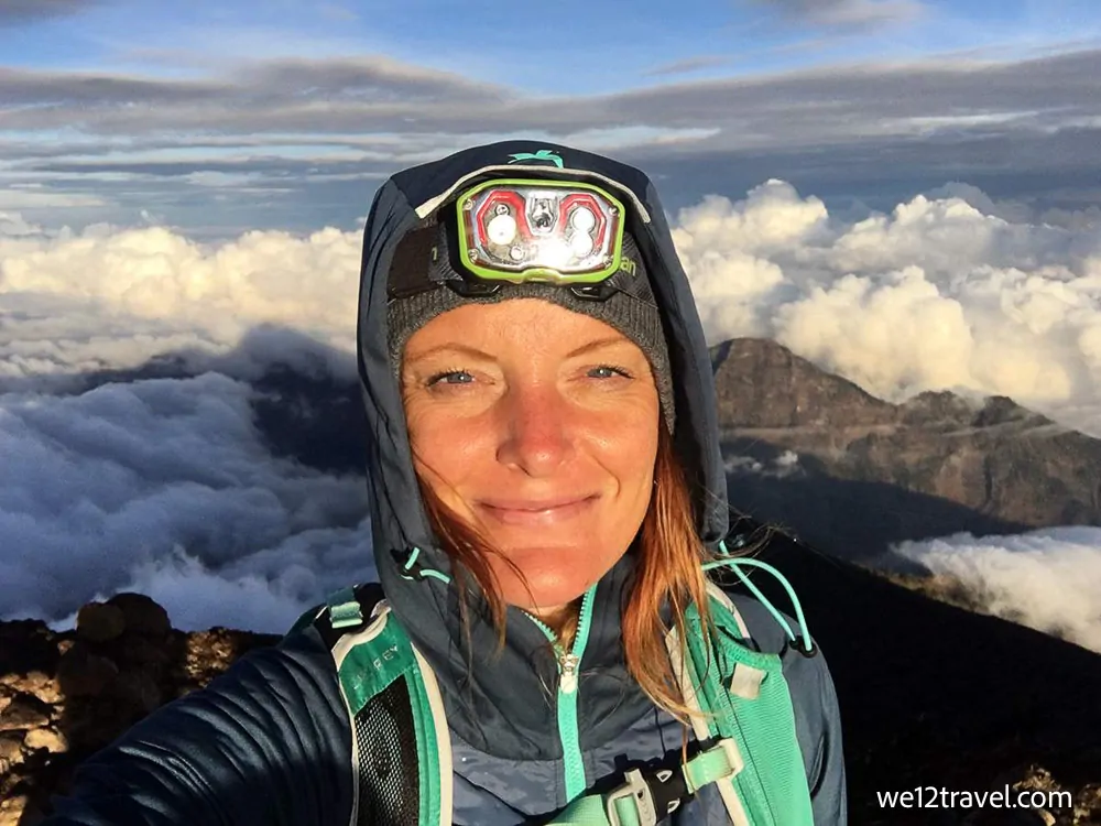 Le réveil a sonné à 1h49 du matin. Il faisait noir comme de l’encre, il faisait un froid glacial et le sommet attendait. Enveloppée dans ses vêtements les plus chauds, Antonette a ajusté sa lampe frontale et a commencé la montée raide. La première heure semblait presque verticale, la deuxième plus horizontale, mais la troisième était une lutte incessante dans du sable volcanique meuble—un terrain tristement célèbre parmi les randonneurs pour sa frustration de “deux pas en avant, un pas en arrière”. Ses compagnons allemands ont pris de l’avance, laissant Antonette lutter contre la montagne à son propre rythme. À 3 300 mètres, elle était prête à abandonner. Le vent hurlait, ses mains étaient engourdies et le sable meuble semblait déterminé à la faire redescendre. Son guide est resté proche, lui rappelant combien elle était déjà allée loin. “Encore une heure,” se dit-elle. Cela semblait être une éternité, mais elle a continué, rampant parfois, jusqu’à ce que le sommet soit enfin en vue.