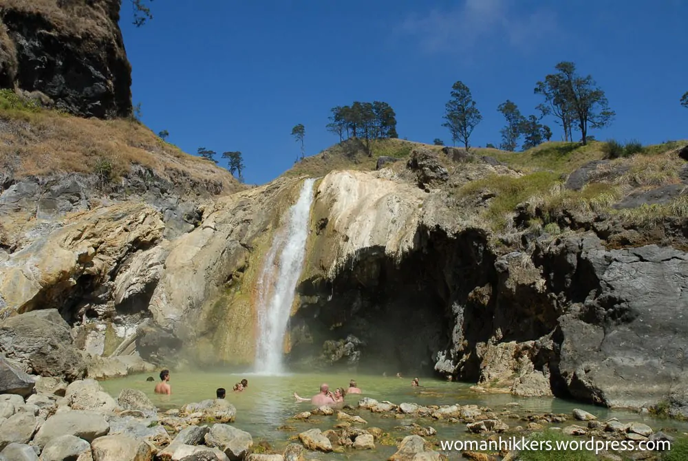 La descente vers le bord du cratère fut plus rapide, mais tout aussi exigeante. Les jambes de Donovan tremblaient de fatigue, mais la promesse du petit déjeuner et d’un court repos le maintenait motivé. Le groupe a ensuite commencé la descente dans la caldera, naviguant sur un sentier escarpé et rocheux qui a mis à l’épreuve leur équilibre et leur endurance. À midi, ils ont atteint le lac Segara Anak, où une source chaude a offert une agréable pause. Donovan a plongé ses jambes fatiguées dans les eaux chaudes et riches en minéraux, s’émerveillant de la beauté sereine du lac et des montagnes environnantes.