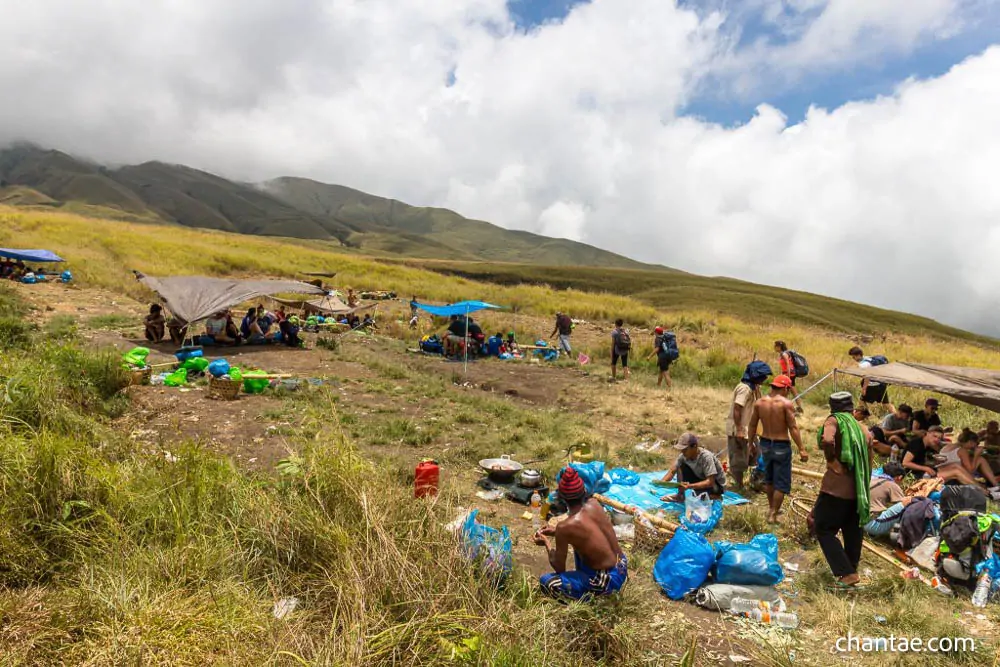 Het kamp bestond uit een cluster van neonkleurige tenten die precair op de rand stonden, met uitzicht op de uitgestrekte krater. De dragers waren al eerder aangekomen en hadden alles opgezet, inclusief een warme maaltijd van groentecurry en gemberthee. Chantae, nog steeds opgewonden van de klim, vroeg de dragers om haar metalen waterfles te vullen met warme thee om haar door de nacht warm te houden.